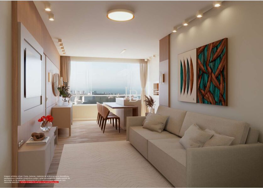 Apartamento tipo 01 (finais 2,3,6,7) com 69,32m² contém 2 dormitórios, sendo um deles suíte, amplo living com cozinha integrada com sala de estar e jantar, área de serviço, 1 banheiro social, churrasqueira integrada à cozinha, sacada integrada e persiana integrada.